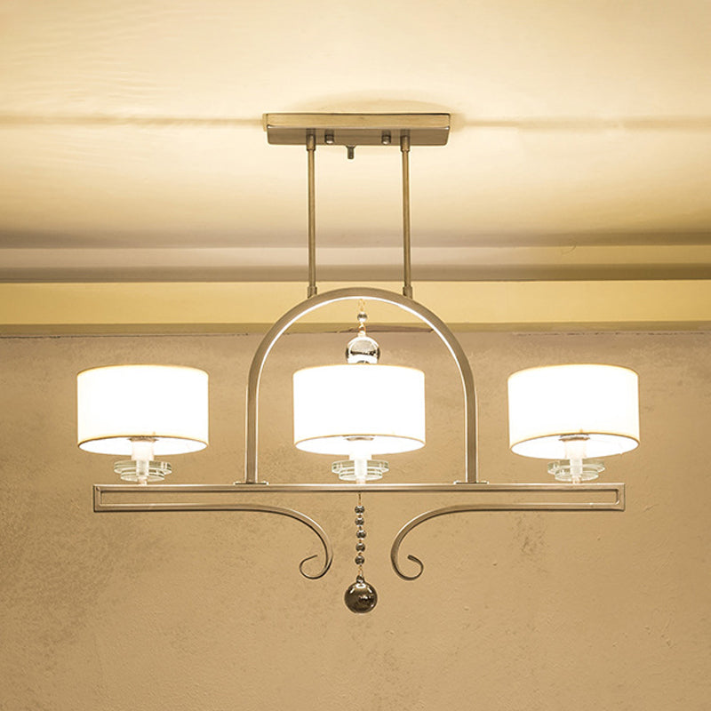 Traditional Drum Fabric Island Pendant Light In Gold - 3 Lights Hanging Lamp For Living Room