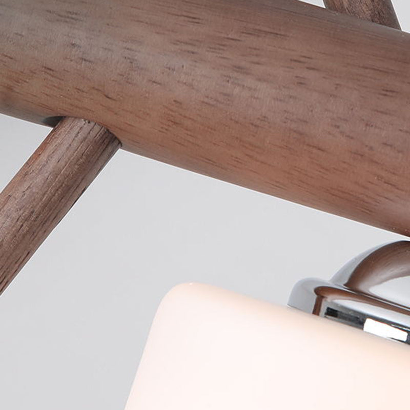 Zeitgenössische Insel-Pendelleuchte aus Holz mit Nussknacker-Design und zylindrischen Glasschirmen – 3er-Set