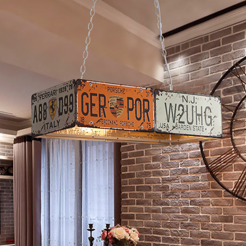 Red Metallic Hanging Lamp: 3-Light Rectangle Island Ceiling Light For Dining Room