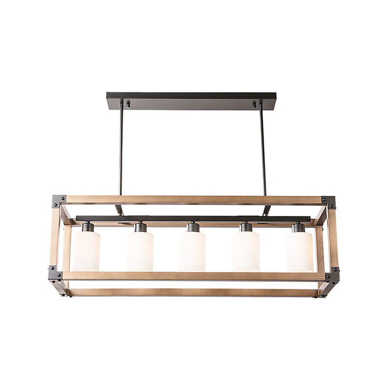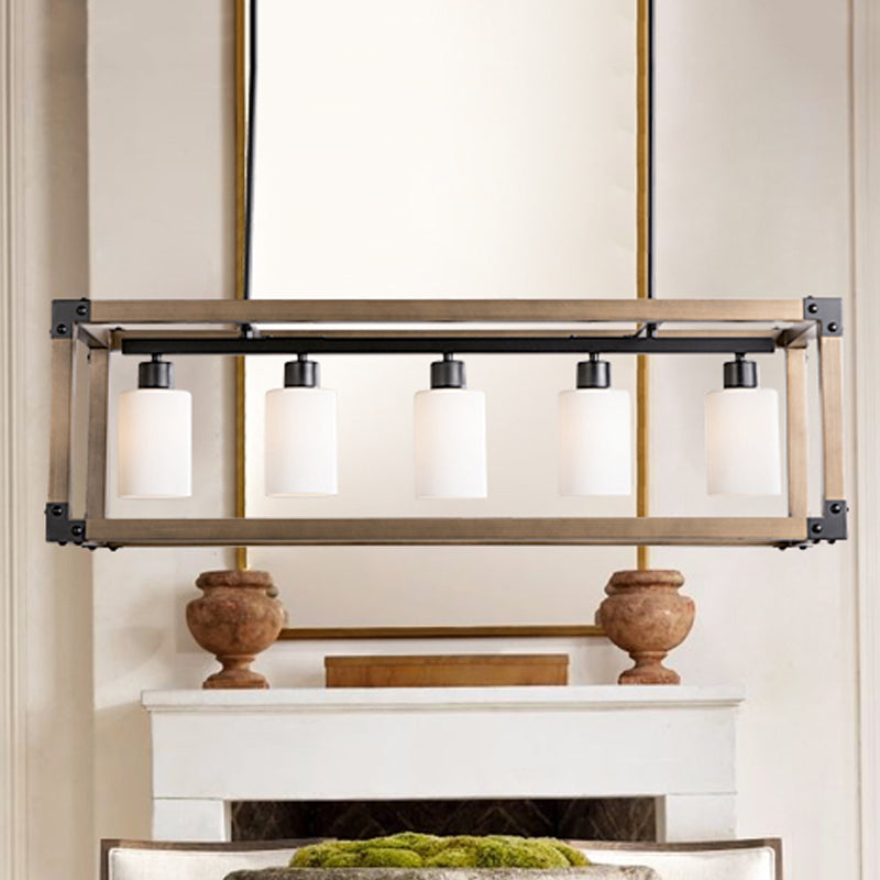 Black Traditional Dining Room Island Pendant Light With Milky Glass Shades - 5-Light Hanging Lamp