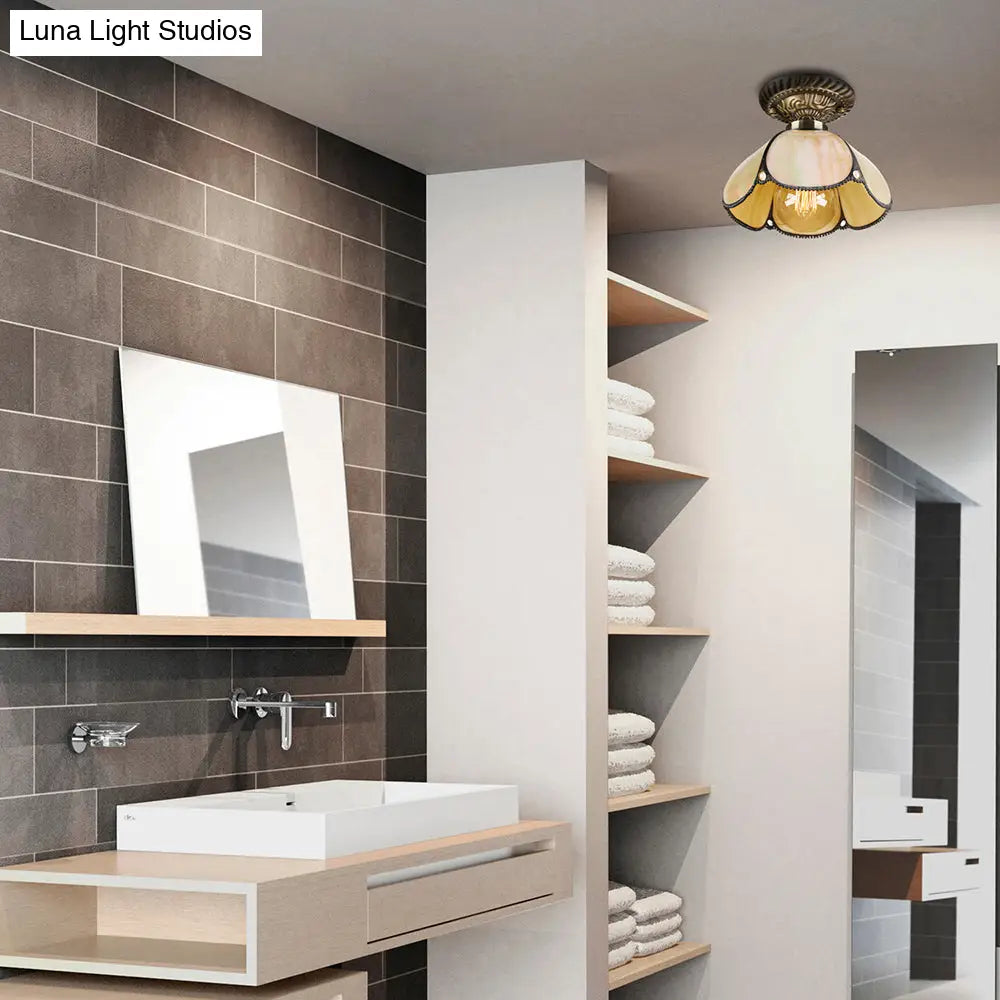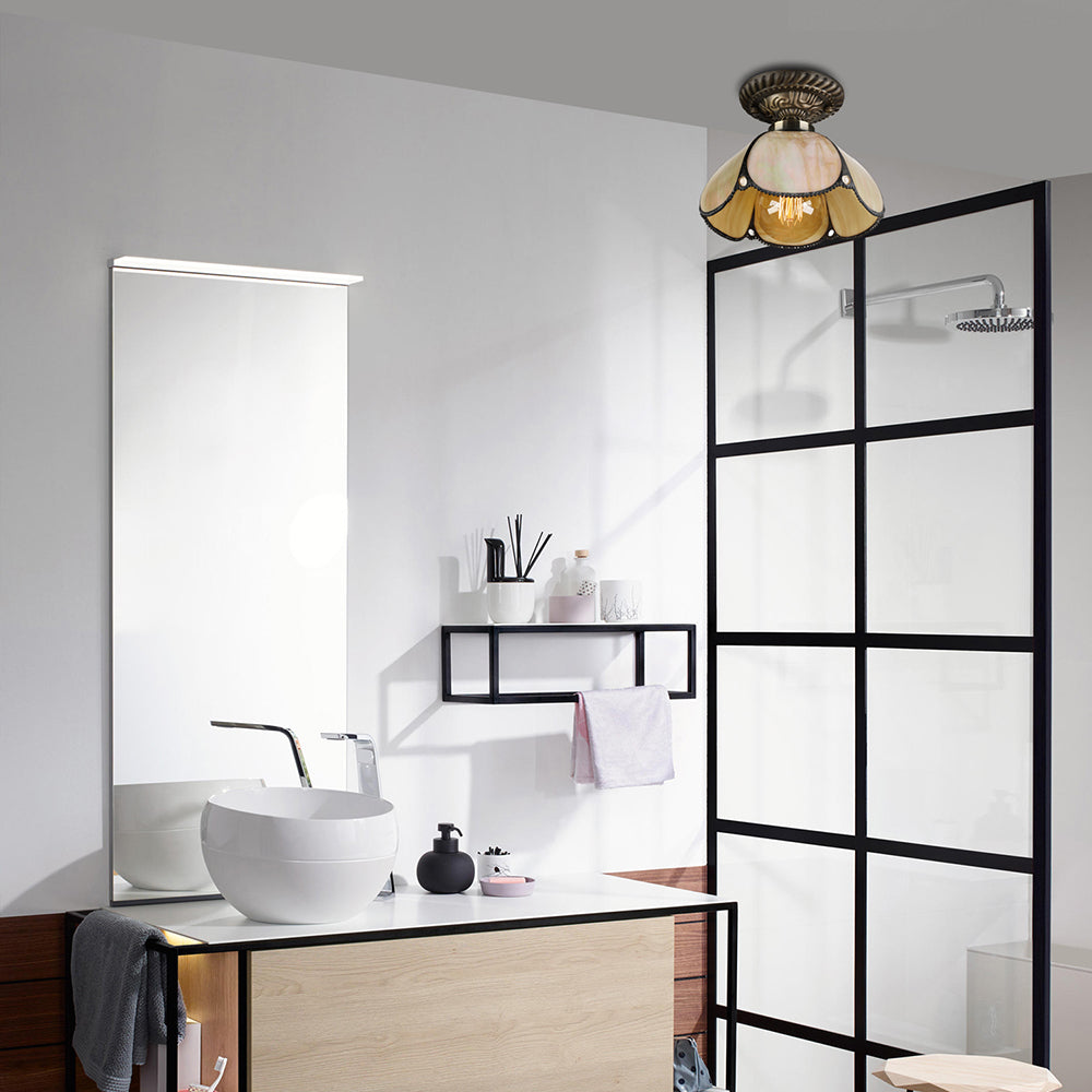 Tiffany-Deckenleuchte aus antikem Kunstglas für die Küche – beige gewölbte Halterung mit 1 Kopf