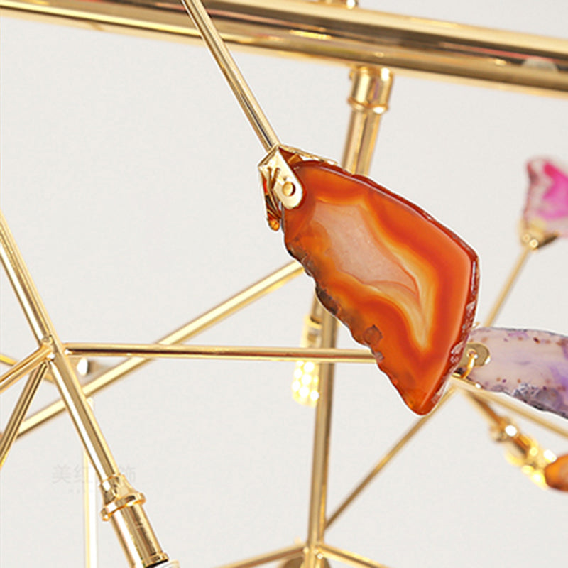 Diese Deckenleuchte mit ihrem astähnlichen Design verleiht jedem Raum einen Hauch von Modernität. Der Metallrahmen ist goldfarben und verleiht ihm ein luxuriöses Aussehen, während der Achat-Akzent für einen Hauch von Glamour sorgt. Die Leuchte wird mit LED-Lampen betrieben und ist dadurch effizient und langlebig. Die Kette/das Kabel ist 80 cm lang.