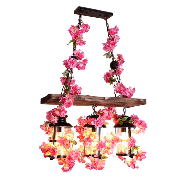 Industrielle Hängelaterne aus klarem Glas mit 3 zylindrischen Köpfen – Restaurantinselleuchte mit künstlerischer Pflanzendeko