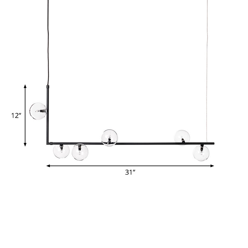 Modernist Black Glass Globe Pendant Light With 6 Bulbs And Right Angled Frame - Warm/White Lighting