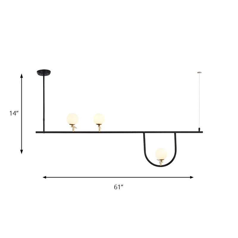 Diese raffinierte Deckenleuchte ist perfekt, um Ihrem Esszimmer Eleganz und dennoch einen modernen Stil zu verleihen. Dieser Kronleuchter aus Metall mit schwarzem Finish verströmt mit seinem schlanken Design einen zeitgenössischen Charme. Mit seinen drei Lichtern hat er genügend Kraft, um Ihren Raum nach Wunsch zu beleuchten. Was dieses Stück wirklich hervorstechen lässt, ist sein kugelförmiger Schirm, der das Licht an alle richtigen Stellen scheinen lässt. Die Größe und Länge dieser Leuchte machen sie zu einer großartigen Wahl für große Räume, da sie 25 Zoll und mehr misst und eine Länge von 61 Zoll hat. Die Leuchtenhöhe beträgt 14 Zoll und benötigt keine Glühbirnen, da sie LED-Technologie verwendet, genauer gesagt einen G4-Lampentyp mit 220–240 V und 110–120 V Spannung. Verleihen Sie Ihrem Esszimmer eine Designer-Atmosphäre, indem Sie diese postmoderne schwarze Inselleuchte zum Herzstück Ihres Zuhauses machen.