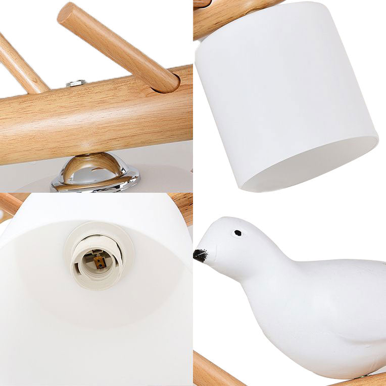 Hängender Kronleuchter aus Holz mit 2/3 Lichtern, zylindrischem Glasschirm und Vogeldekor – ideal für die Beleuchtung von Esszimmer oder Kücheninseln