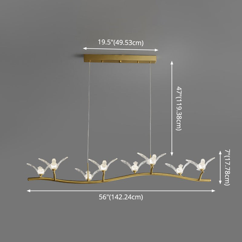 Zweig-Pendelleuchte mit Vogeldekor – Gold-Finish & LED-Insellicht aus Acryl