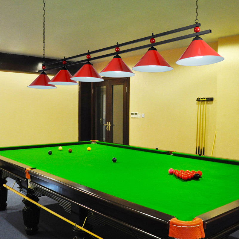 Conical Island Metal Pendant Ceiling Light - Industrial Style With Decorative Billiards Accent