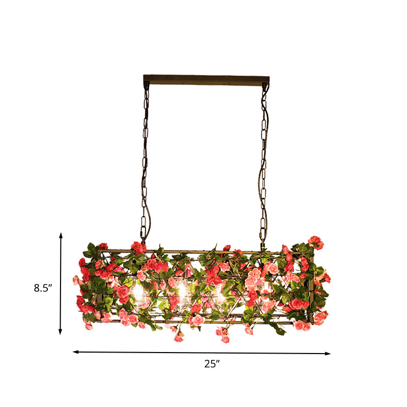 Industrielle rechteckige LED-Pendelleuchte aus Messing mit 4 Glühbirnen – ideal fürs Schlafzimmer