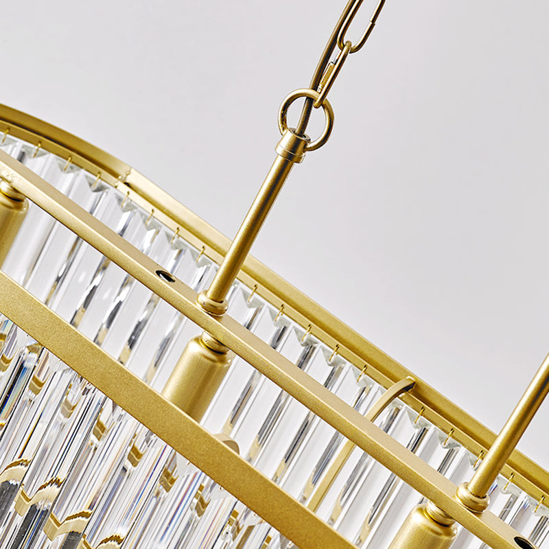 Ovale Insel-Deckenleuchte mit postmodernem Design – 4 Aufhängungsköpfe aus klarem Kristall