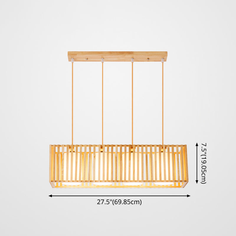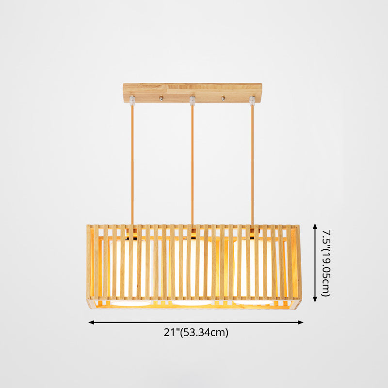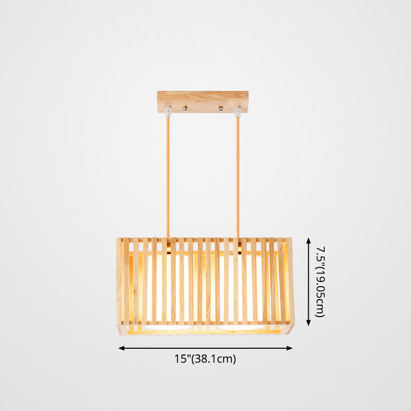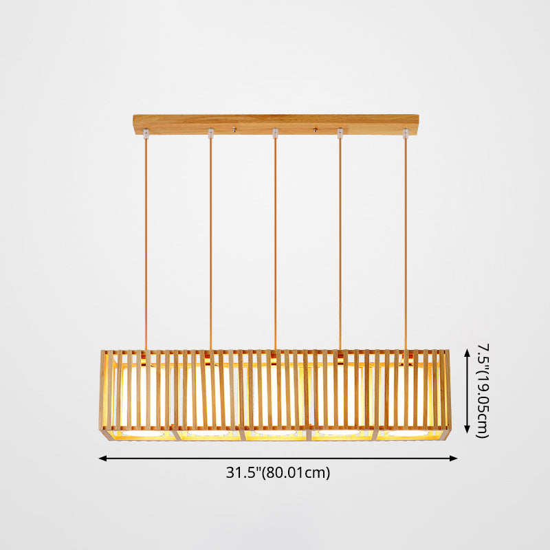 Asiatische Holzinsel-Pendelleuchte – Natürliches Holz-Finish