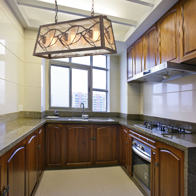 Rustic Metal Island Light Fixture: Country Pendant Lighting For Living Room - 3/6 Lights Rectangular