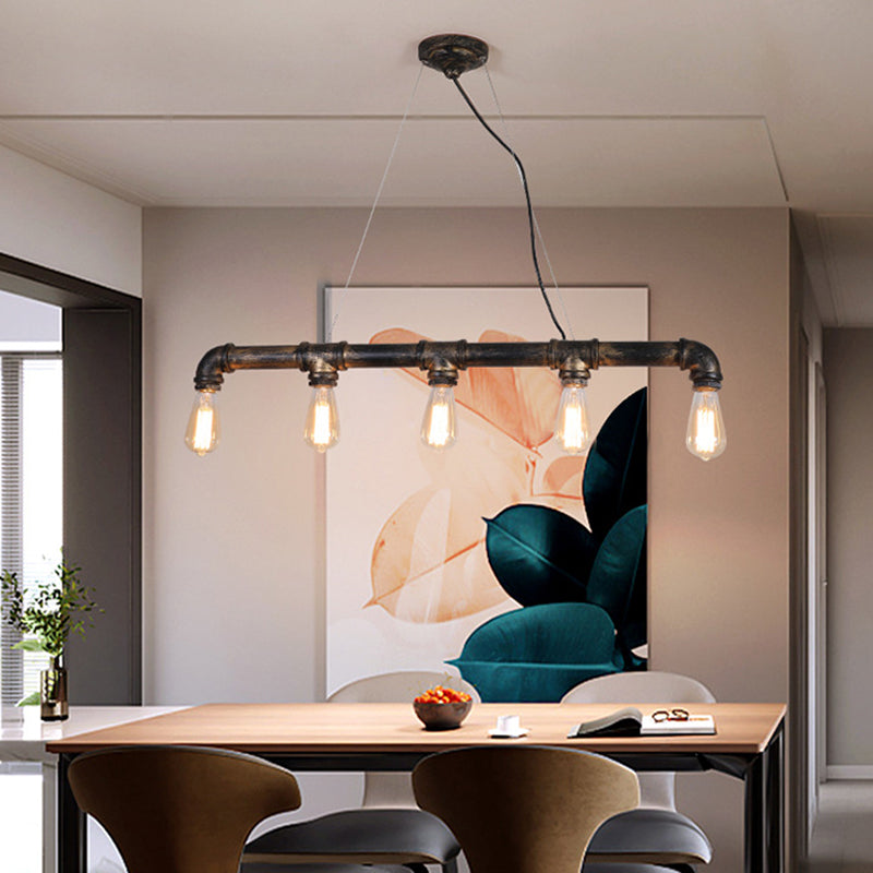Bronze Steampunk Water Pipe Island Light Wrought Iron Suspended Fixture