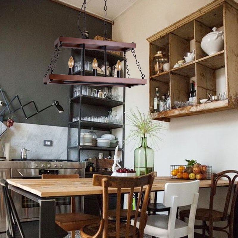 Vintage 3/5 Lichter Esszimmer Insel Beleuchtungskörper in Braun