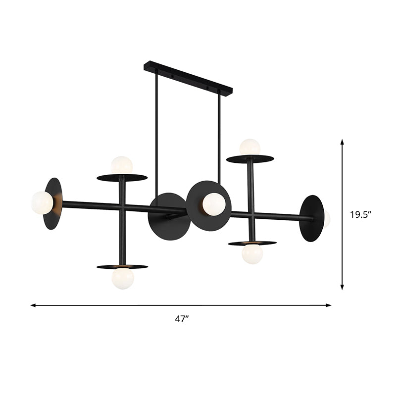 Modern 8-Head Black Ceiling Light Fixture For Kitchen: White Glass Orbit Island Pendant
