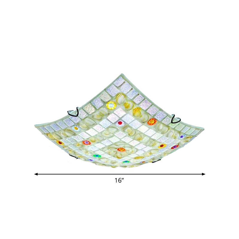 Tiffany Style Square Shell Flush Mount Ceiling Light With 3 Lights White - Ideal For Kitchen