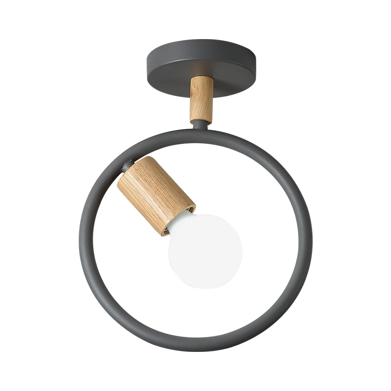 Minimalist Circle Metal Flushmount Light With Wood Arm And 1 Bulb - Grey/Green/White Option Grey