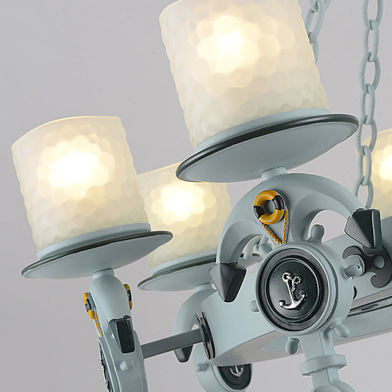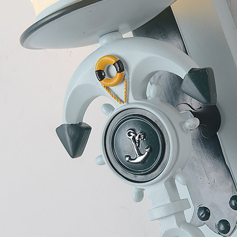 Blue Antique Style Milk Glass Cylinder Wall Light With Anchor Deco Sconce For Front Door 2 /