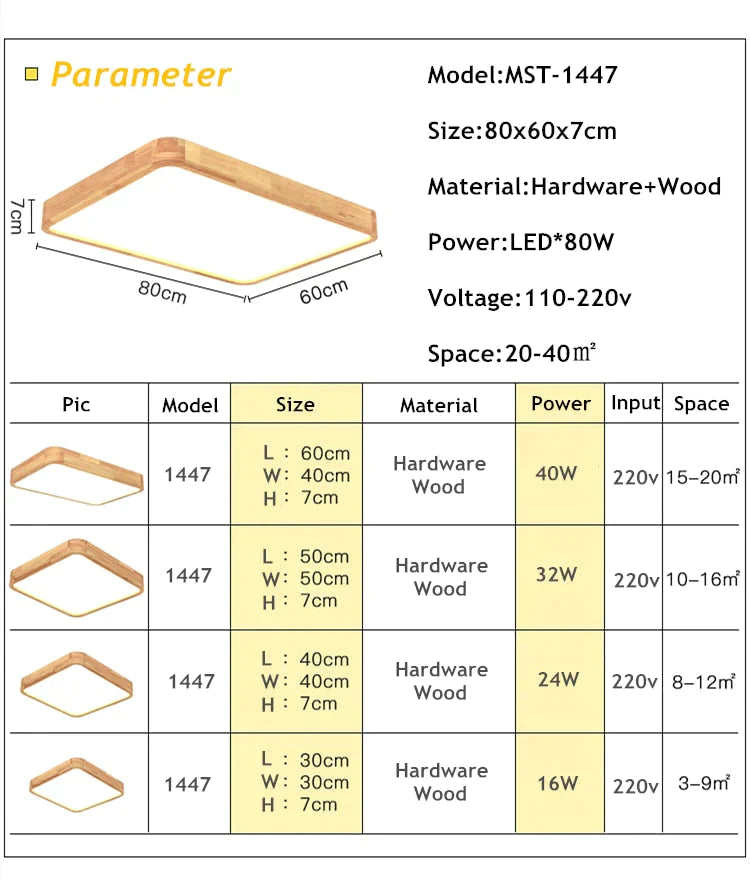 Nordic Simple Modern Oak Wood Ceiling Lamp Ultra Thin Led Lights