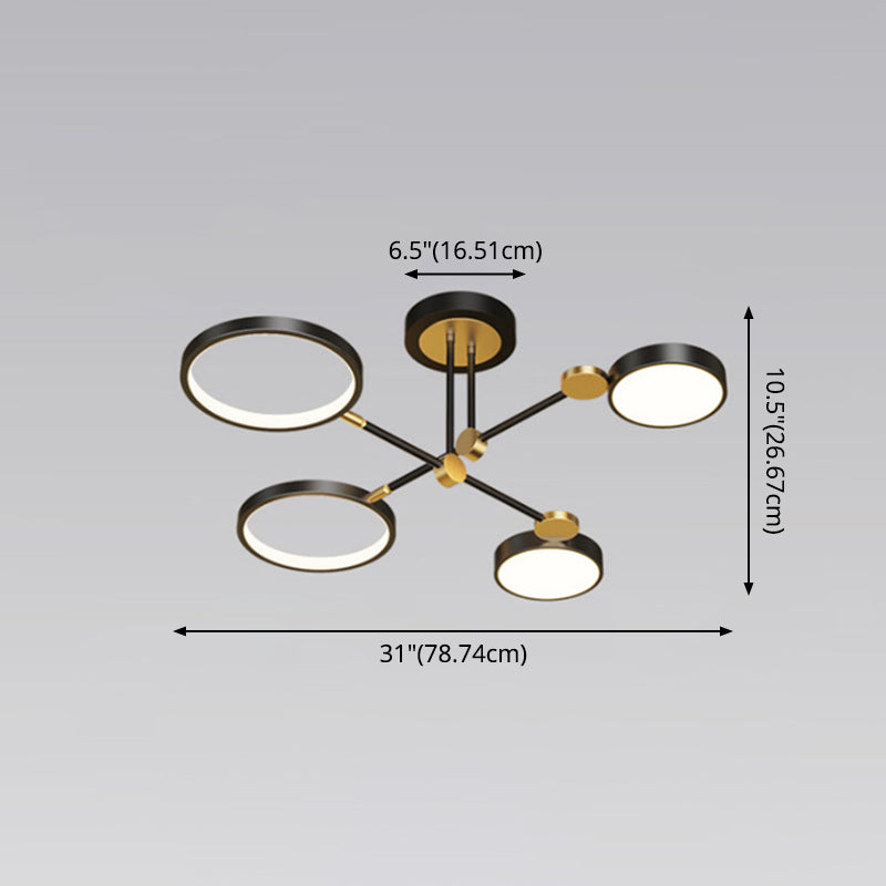 Modernist Metal Ring Chandelier Pendant Light With Hanging Cord - Perfect For Living Room 4 / Black