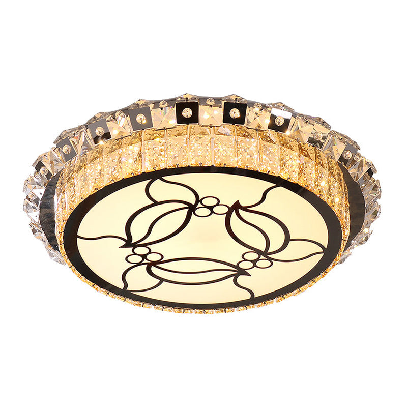 Modern Stainless Steel Led Flush Ceiling Lamp With Beveled Crystal Leaf Pattern