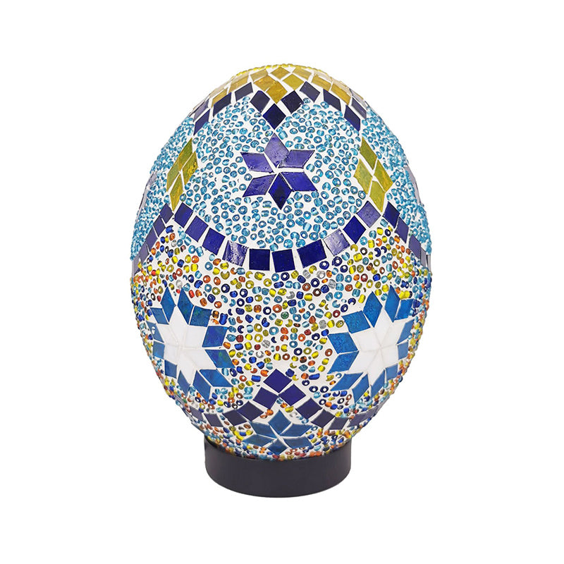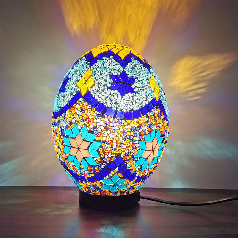 Vintage Blue Stained Glass Table Light For Bedroom Desk - 1-Light Elegant Oval Shade