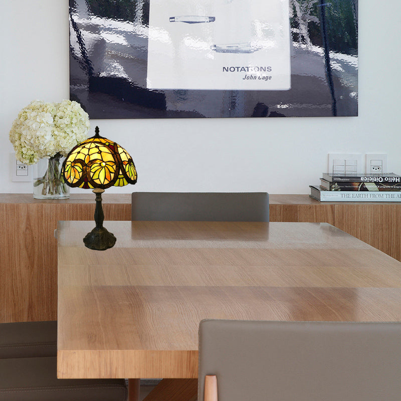 Tiffany Brass Bedside Table Lamp With Stained Glass Shade