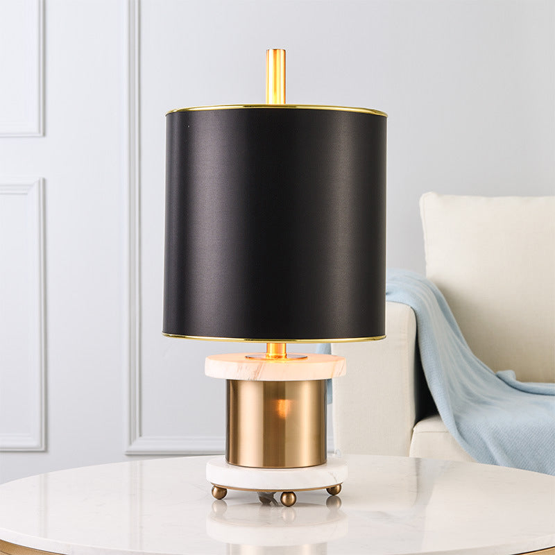 Schwarzes, trommelförmiges Leselicht fürs Schlafzimmer – 1-flammige Arbeitsbeleuchtung aus Stoff, traditioneller Stil