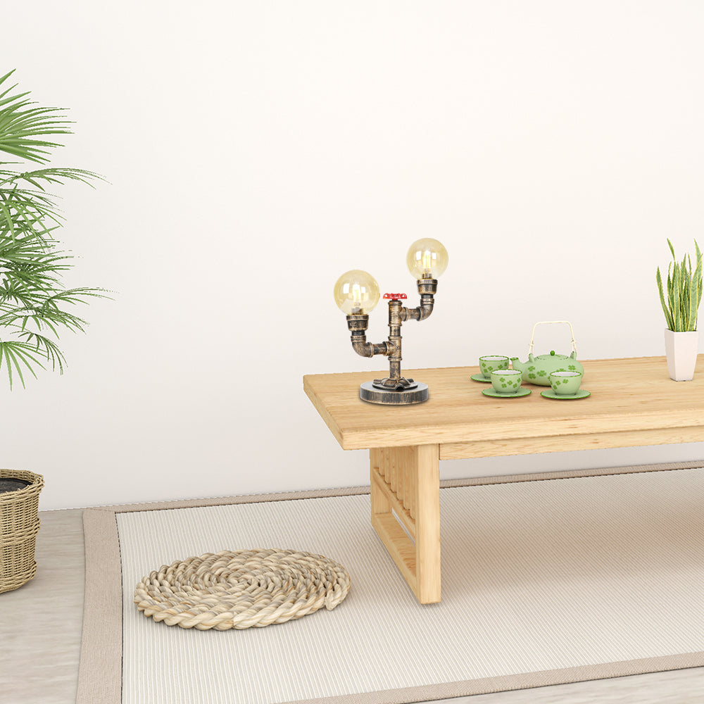 Industrial Antique Silver/Bronze Globe Shade Sconce Lamp With Clear/Amber Glass 2-Light Task