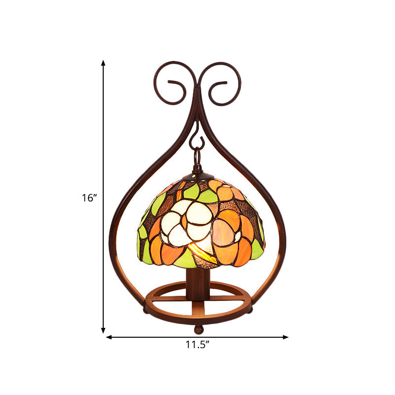Sara - Baroque Bowl Night Lamp: Hand Cut Glass Nightstand Light With Scrolled Brown