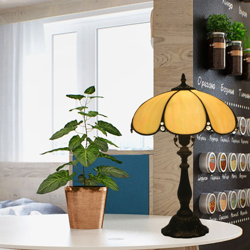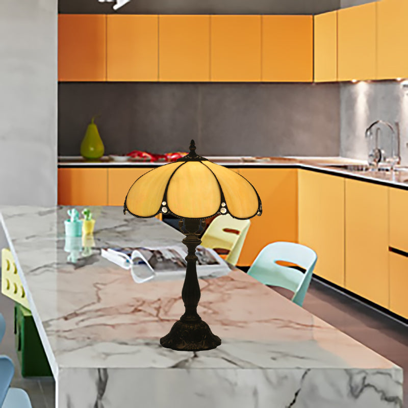 Baroque Scalloped Beige Table Lamp - Elegant Stained Glass Nightstand For Bedroom