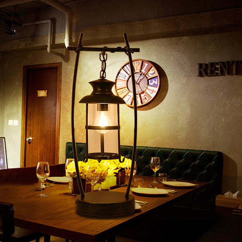 Coastal Brass Desk Lamp With Clear Glass Lantern Shade - 1 Light Oval Frame