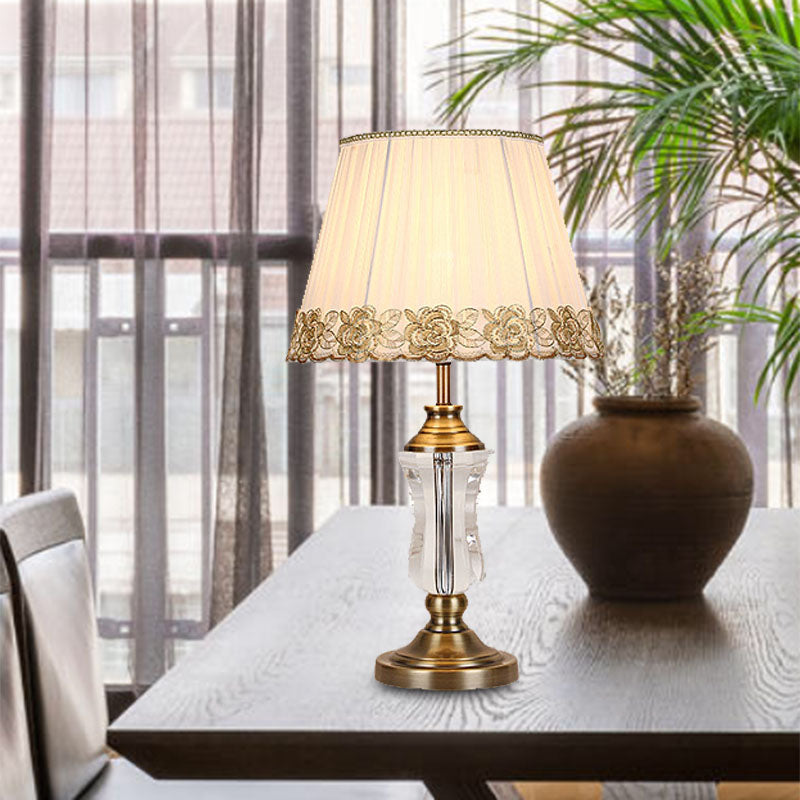Traditionelle konische Nachttischlampe aus Kristall mit geflochtenem Rand – Weiß
