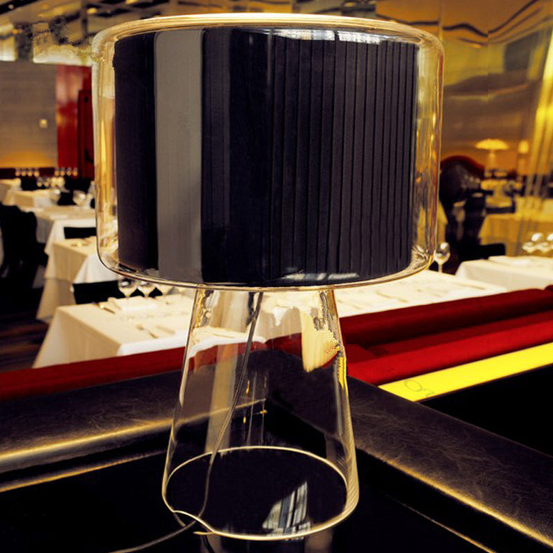 Designer-Tischleuchte aus klarem Glas mit geriffeltem Innenschirm – Nachttischlampe in Schwarz/Weiß