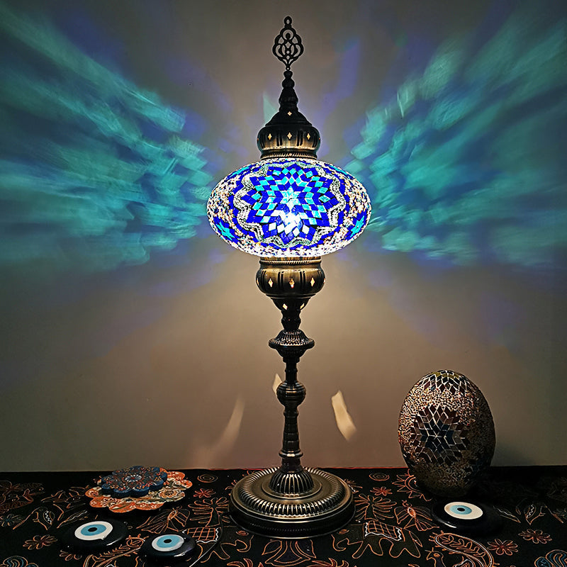 Bei diesem Produkt handelt es sich um eine traditionelle, elliptische Stehleuchte aus Buntglas. Sie hat einen einzelnen Lampenkopf und ist in den Farben Weiß, Beige und Rot erhältlich. Sie ist 80 cm hoch und hat eine 25 cm breite Fassung. Der Schirm besteht aus Glas und ist mehrfarbig. Die Leuchtmittel sind LED, Glühlampen oder Leuchtstofflampen. Der Lampensockel ist E12/E14. Die Spannung beträgt 110–120 V oder 220–240 V.