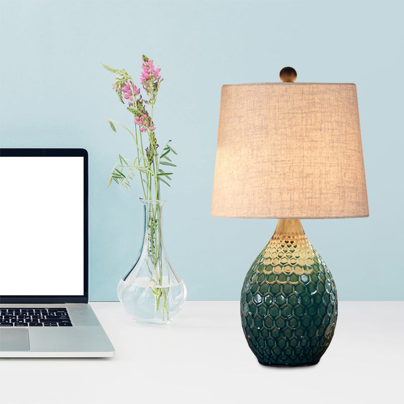 Rustic Silver Grey/Beige Barrel Table Lamp With Ceramic Pedestal Gray