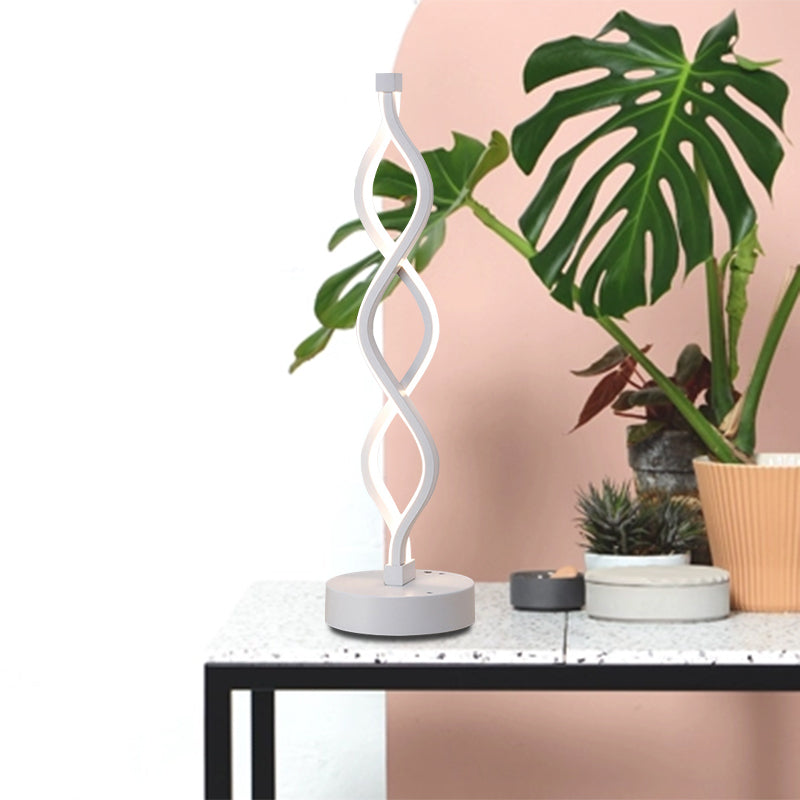 Minimalistische LED-Nachttischlampe mit spiralförmigem Acrylschirm – Warmweißes Licht