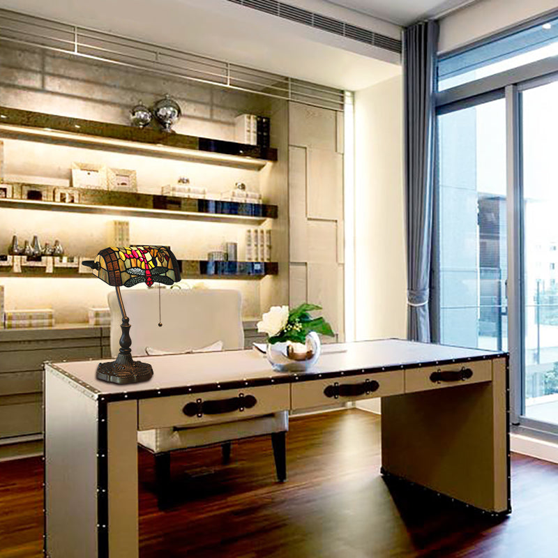 Dieses Produkt ist eine wunderschöne und kunstvoll gestaltete Tischleuchte mit einem Buntglasschirm in Libellen- oder roter Libellenoptik. Die Leuchte ist in Bronze gehalten und verleiht jedem Schlafzimmer einen Hauch von Eleganz. Die Leuchte benötigt eine Glühbirne (nicht im Lieferumfang enthalten) und ist mit LED-, Glüh- oder Leuchtstofflampen kompatibel. Die Spannung beträgt 220–240 V bzw. 110–120 V.