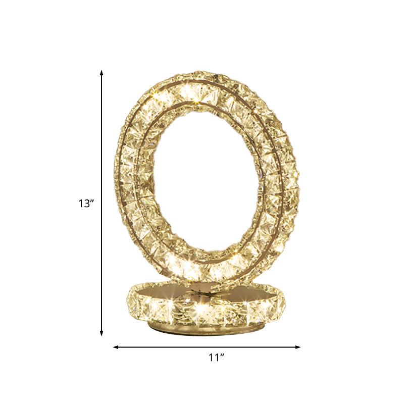 Nachttischlampe aus Metall mit Chrom-Finish, LED-Modernismus, Herz-/Rund-Design und Kristall-Akzent – ​​perfekt für den Nachttisch