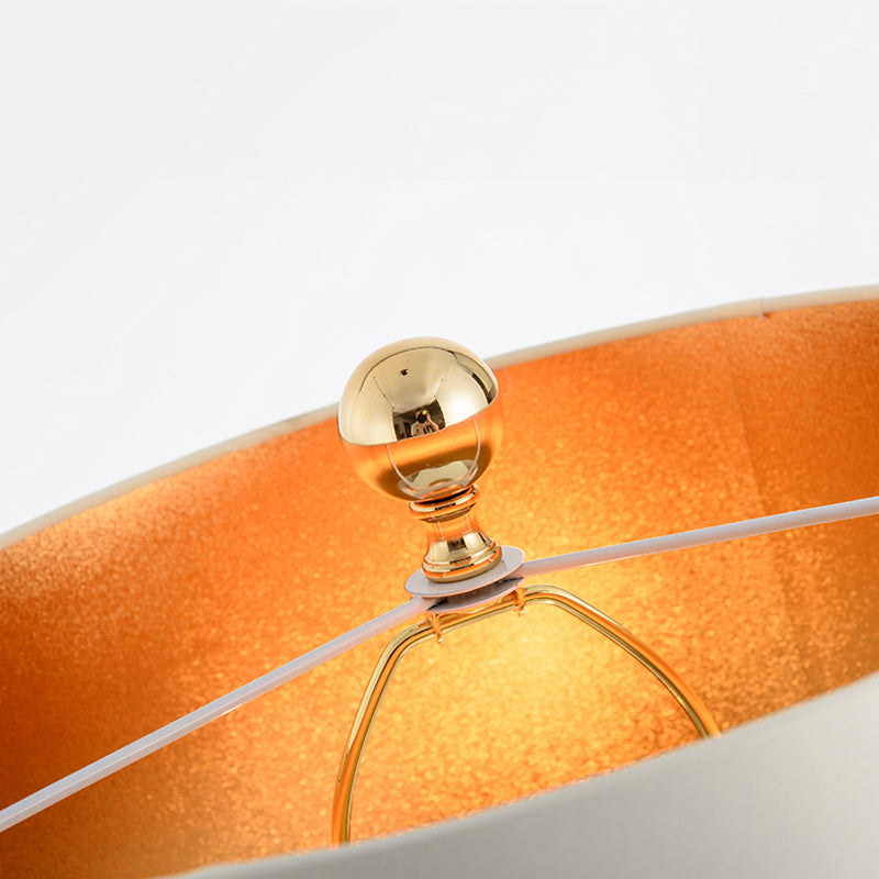 Moderne Tischlampe mit Trommelschirm aus Metall und Marmorsockel – weißes Licht für Schlafzimmer