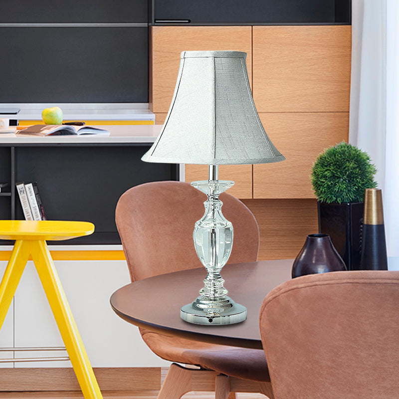 Die minimalistische, getäfelte Glocken-Nachtlampe mit handgeschliffenem Kristall und einem Kopf in Grau ist eine elegante und moderne Stehleuchte, die sich perfekt für jedes Schlafzimmer eignet. Die Lampe besteht aus Kristall und hat einen pagodenförmigen, grauen Schirm. Die Spannung beträgt 220–240 V bzw. 110–120 V und der Lampensockel E26/E27. Die Leuchtmittel sind LED/Glühlampe/Leuchtstofflampe.