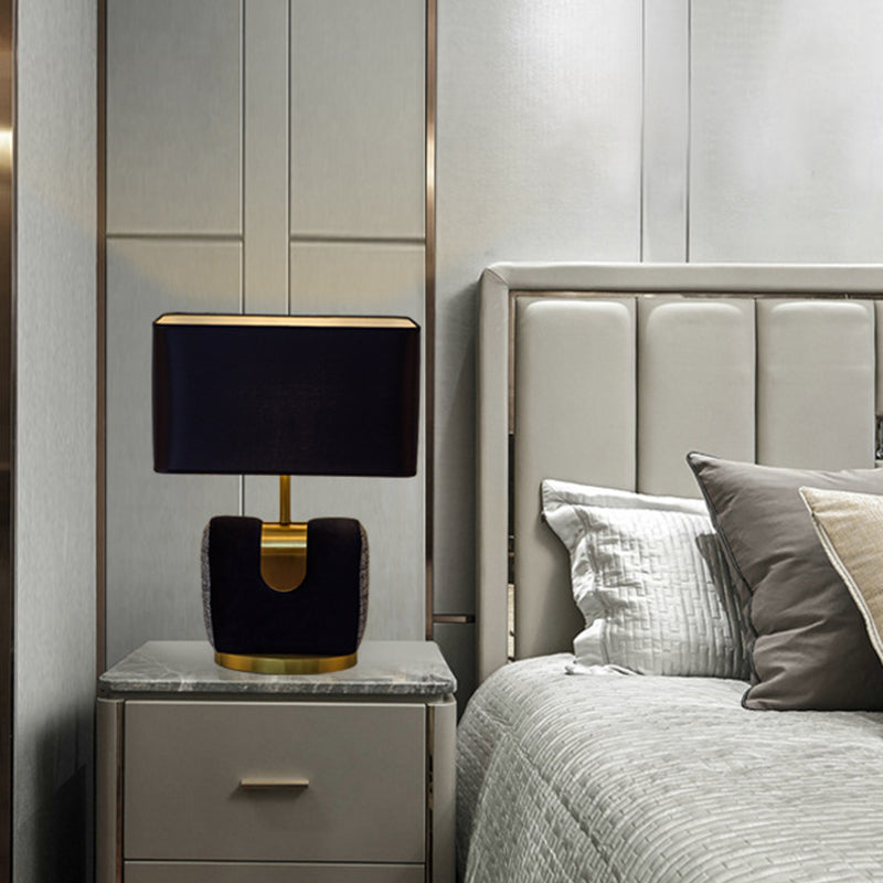 Modern Rectangular Table Lamp 14/16 Wide Black Fabric 1 Head Small Desk For Bedside