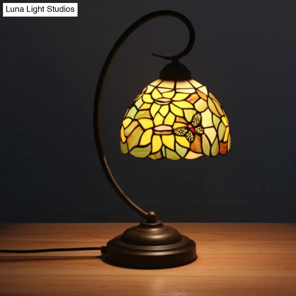 Rot/Gelbe Nachttischlampe im Tiffany-Stil aus handgeschliffenem Glas mit Blütenmuster – Ideale Schreibtischbeleuchtung fürs Schlafzimmer