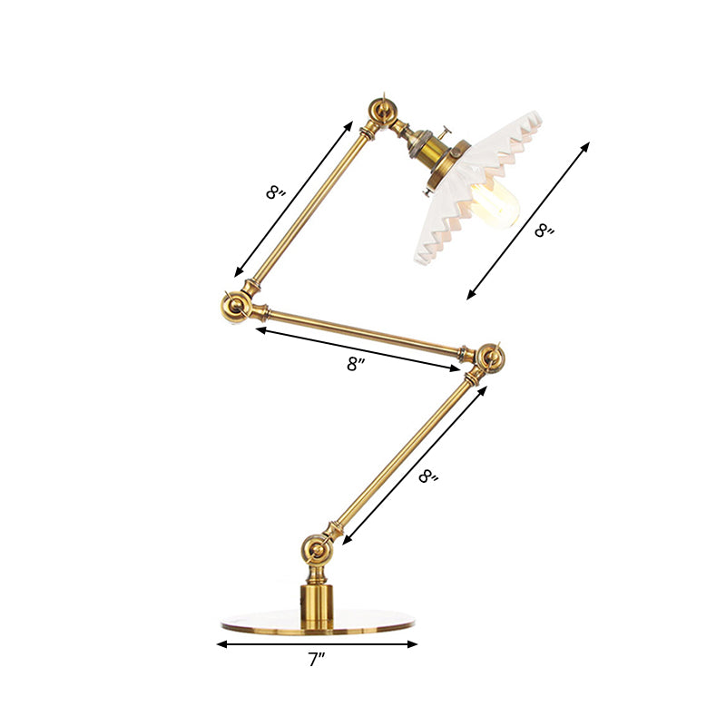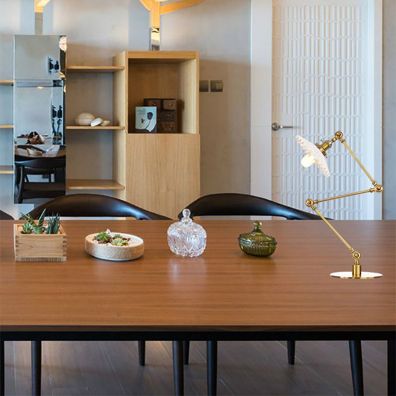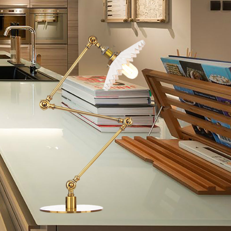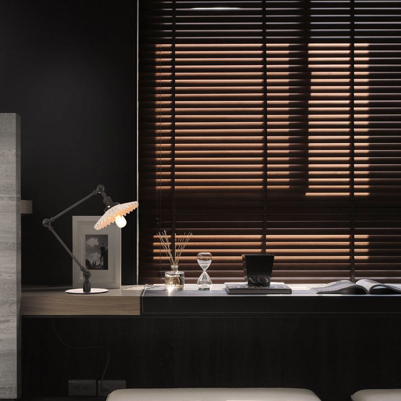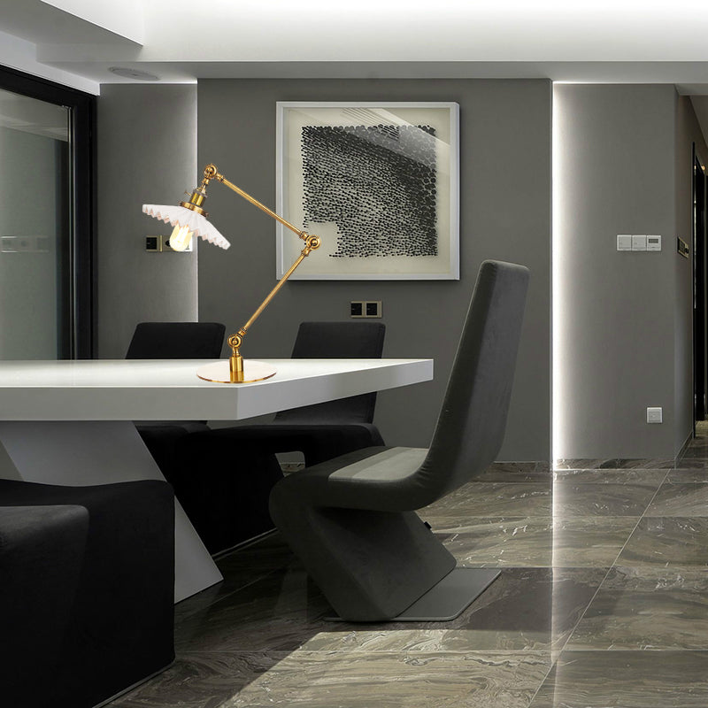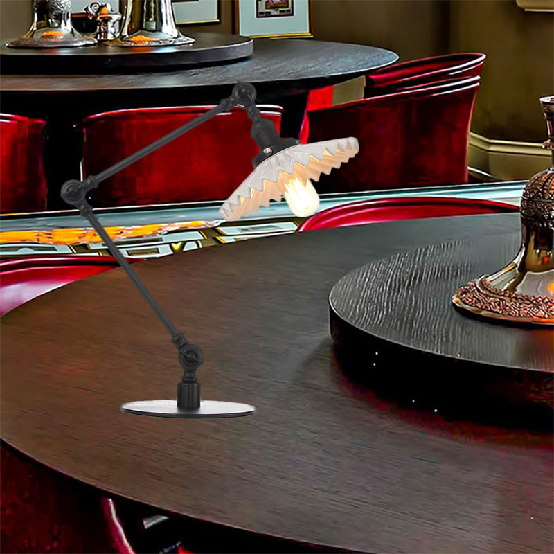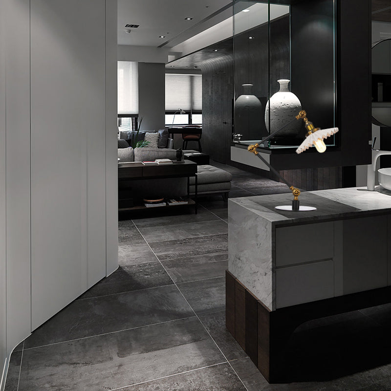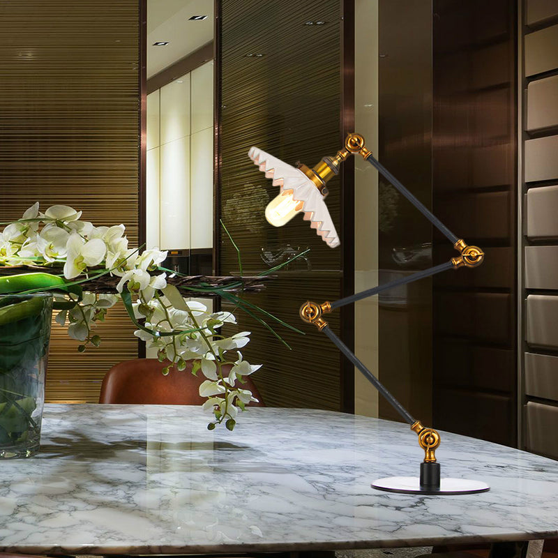 Elegante Keramik-Tischlampe im Landhausstil mit verstellbarem Arm – gewellter Schirm, 1 Licht, Schwarz/Messing – für Schlafzimmer