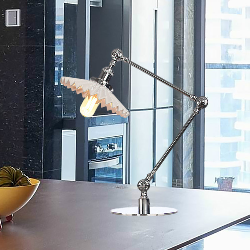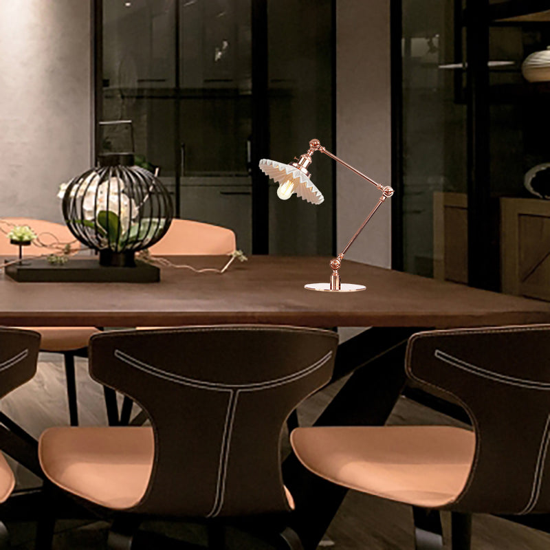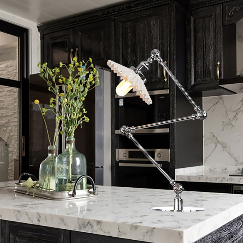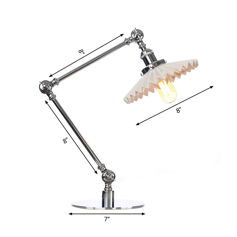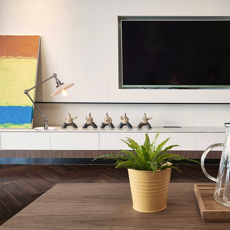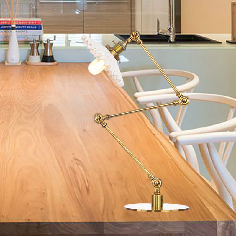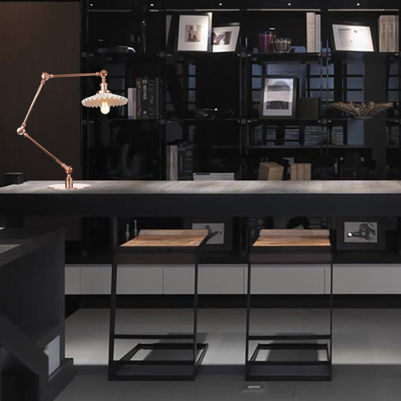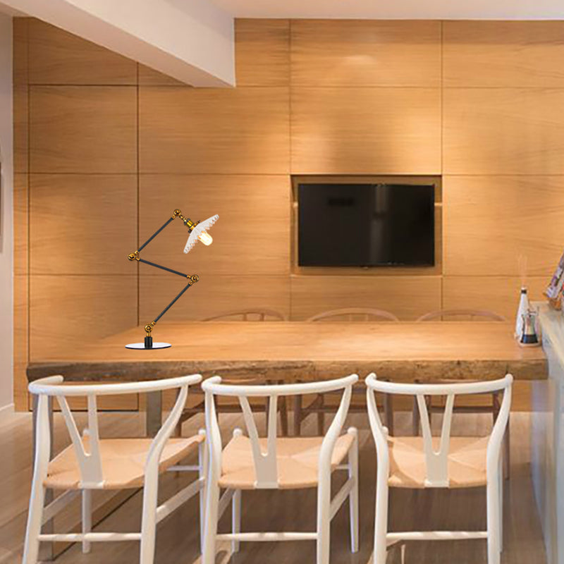 Elegante Keramik-Tischlampe im Landhausstil mit verstellbarem Arm – gewellter Schirm, 1 Licht, Schwarz/Messing – für Schlafzimmer