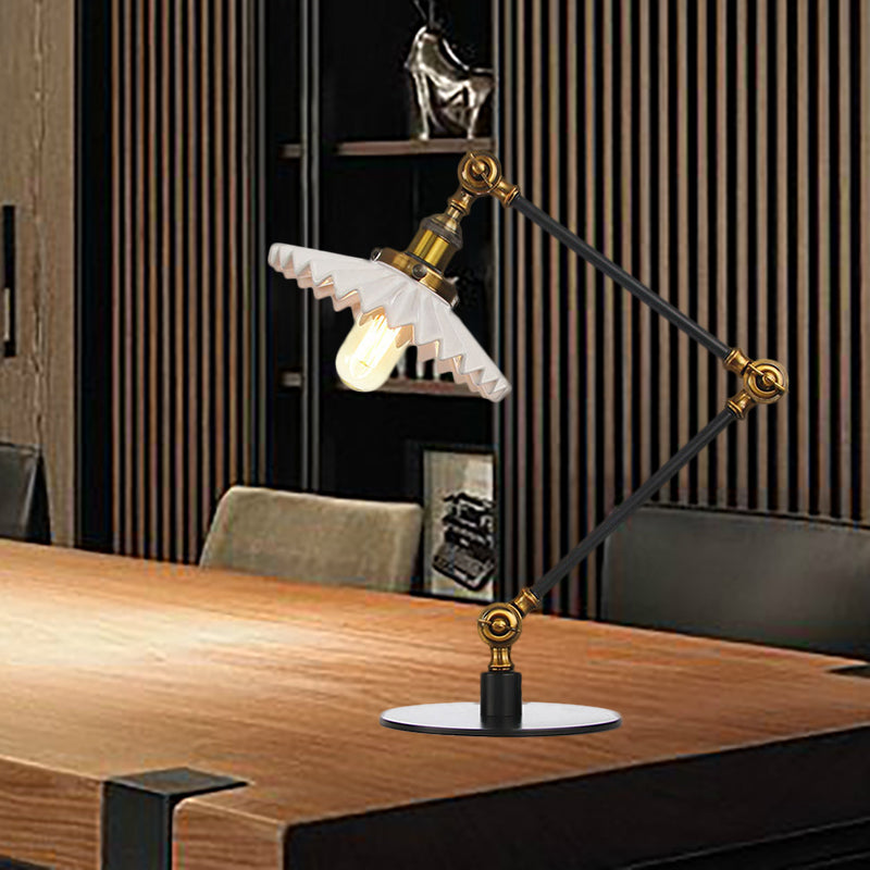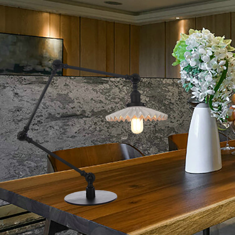 Sleek Farmhouse Style Ceramic Table Lamp With Adjustable Arm - Scalloped Shade 1 Light Black/Brass