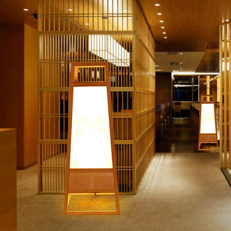 Tapered Wood Desk Lamp - Chinese Style Beige Task Lighting For Living Room