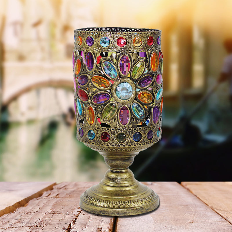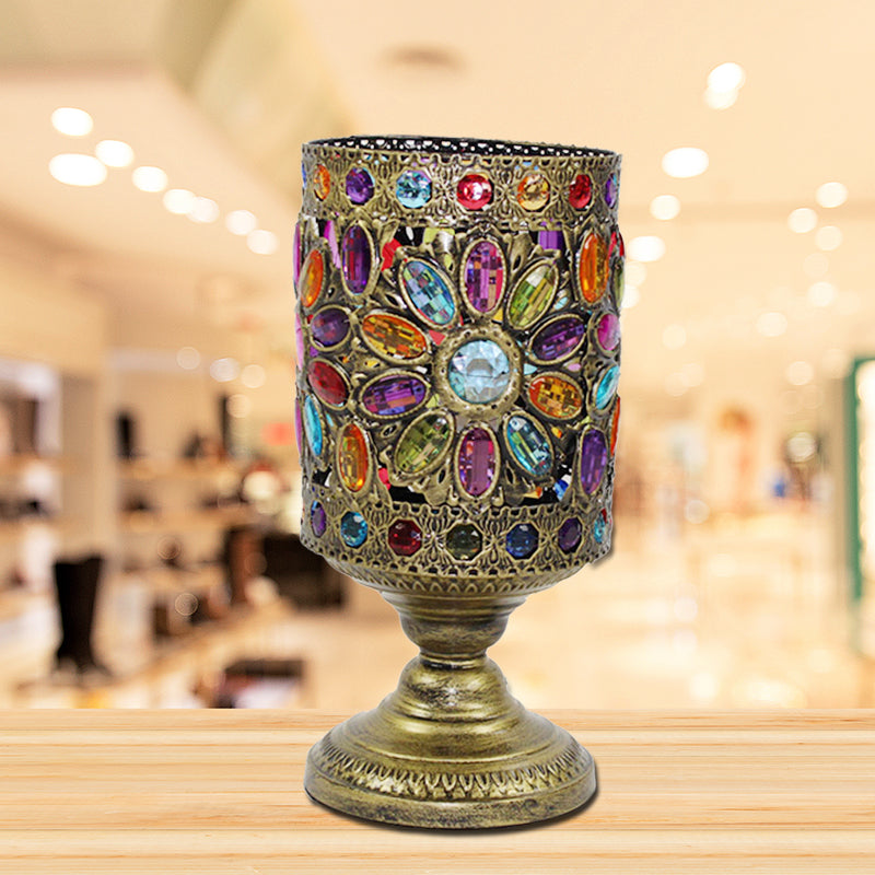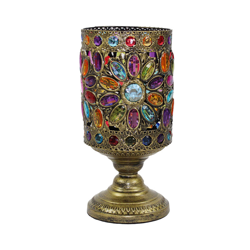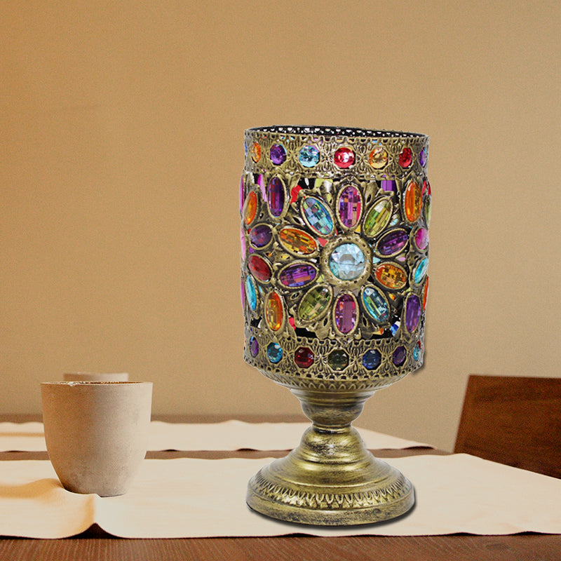 Klassische Nachttischlampe aus Metall in Messing für das Wohnzimmer – zylindrisches Design mit 1 Glühbirne