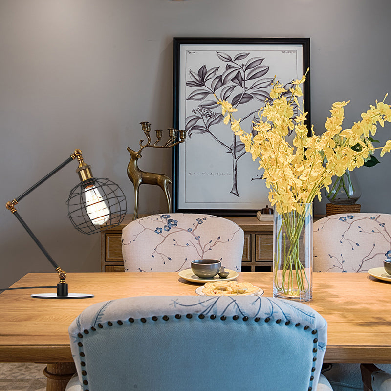 Wire Guard Coffee Shop Table Lamp - Metal 1 Head Light With Global Shade Black/Brass Finish Black /