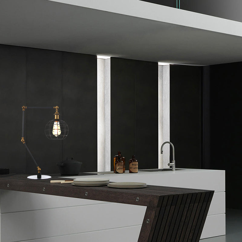 Wire Guard Coffee Shop Tischlampe – Metall 1-flammige Lampe mit Global-Schirm, Schwarz/Messing-Finish